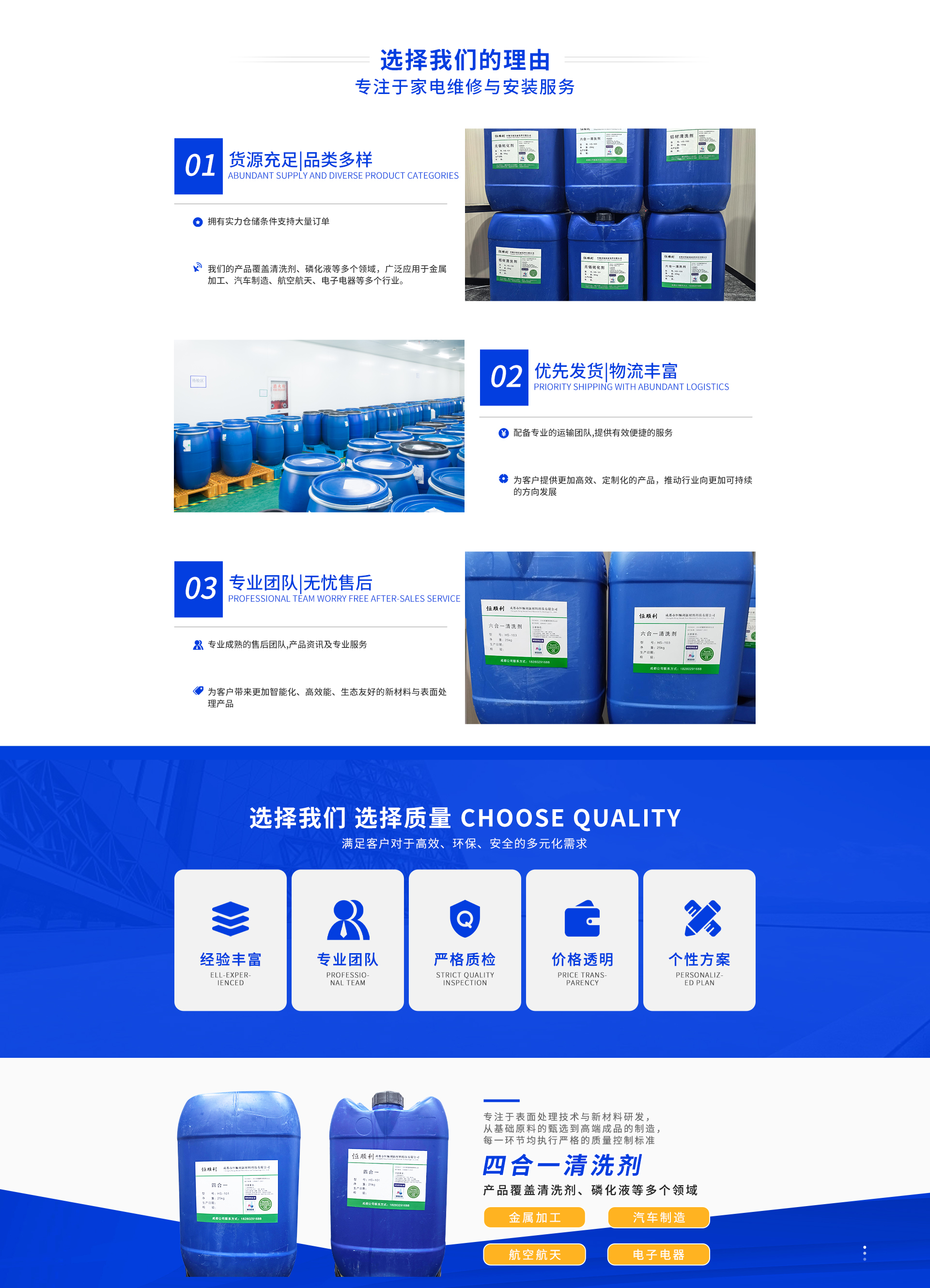 成都市恒顺利新材料科技有限公司,自成立以来,始终坚守“科技驱动,品质为先”的核心价值观,融合前沿的科研力量与精益求精的生产工艺,致力于为客户提供高性能、环保型的表面处理及新材料产品。我们的产品覆盖清洗剂、磷化液等多个领域,广泛应用于金属加工、汽车制造、航空航天、电子电器等多个行业。
